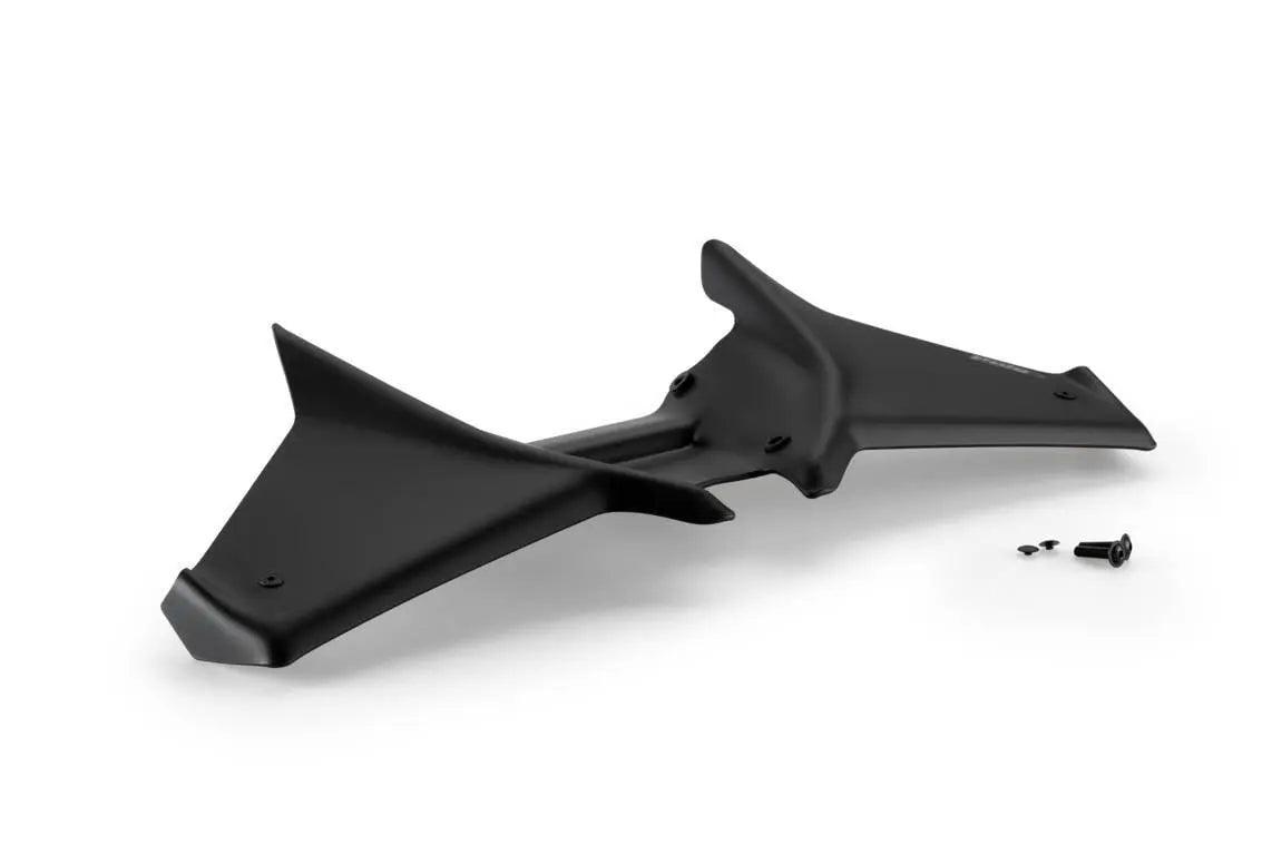 Durch die Lenkung der Luft in Richtung Kühler erzeugt der Spoiler einen Abtrieb von fast 2 kg auf die Vorderachse und sorgt so für einen Anti-Wheelie-Effekt, erhöhte Stabilität bei hoher Geschwindigkeit, optimale Unterstützung beim Bremsen und überlegene Stabilität bei Richtungswechseln.