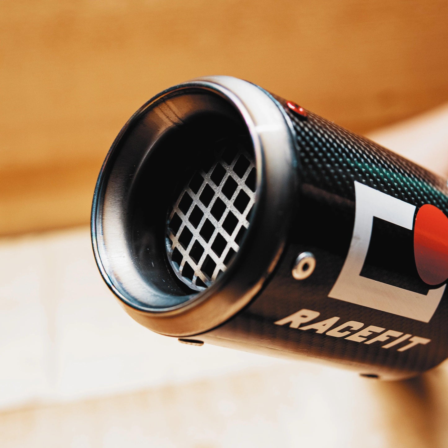 - Schalldämpfer komplett aus Titan oder teilweise aus Kohlefaser, je nach gewählter Option.