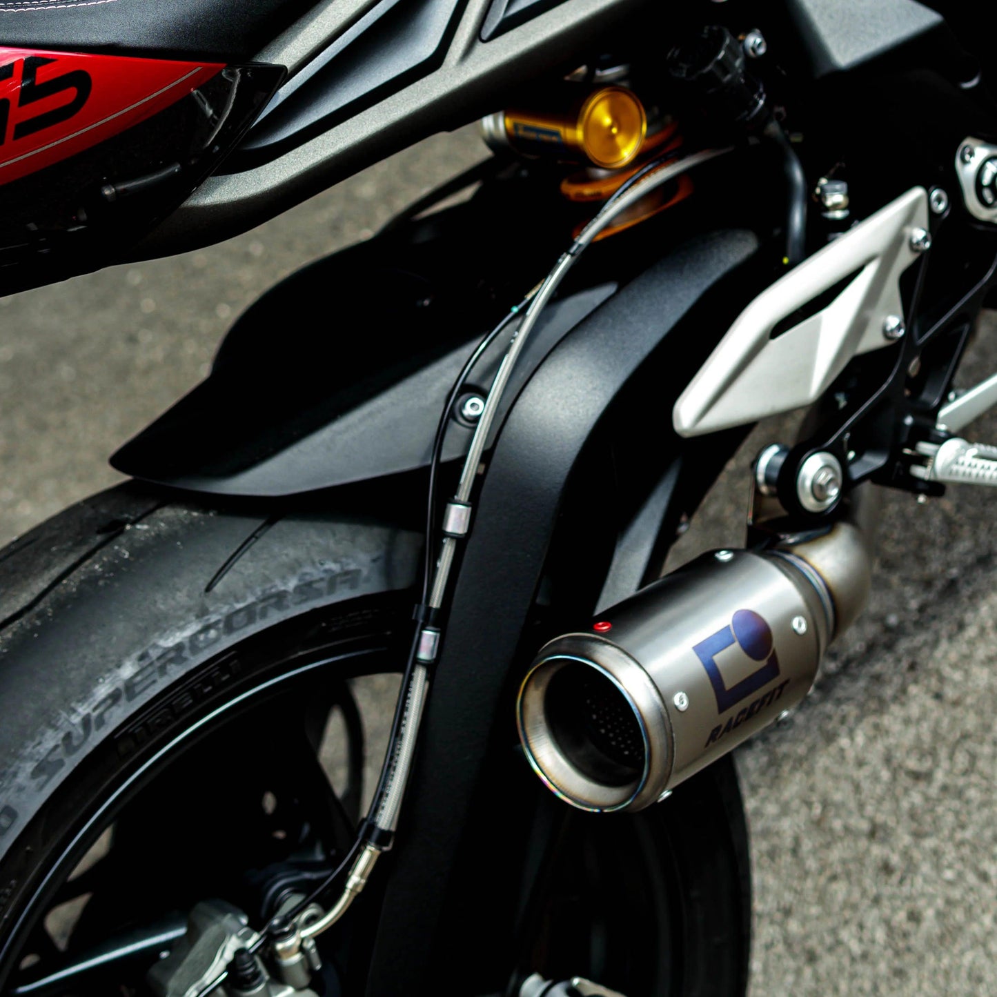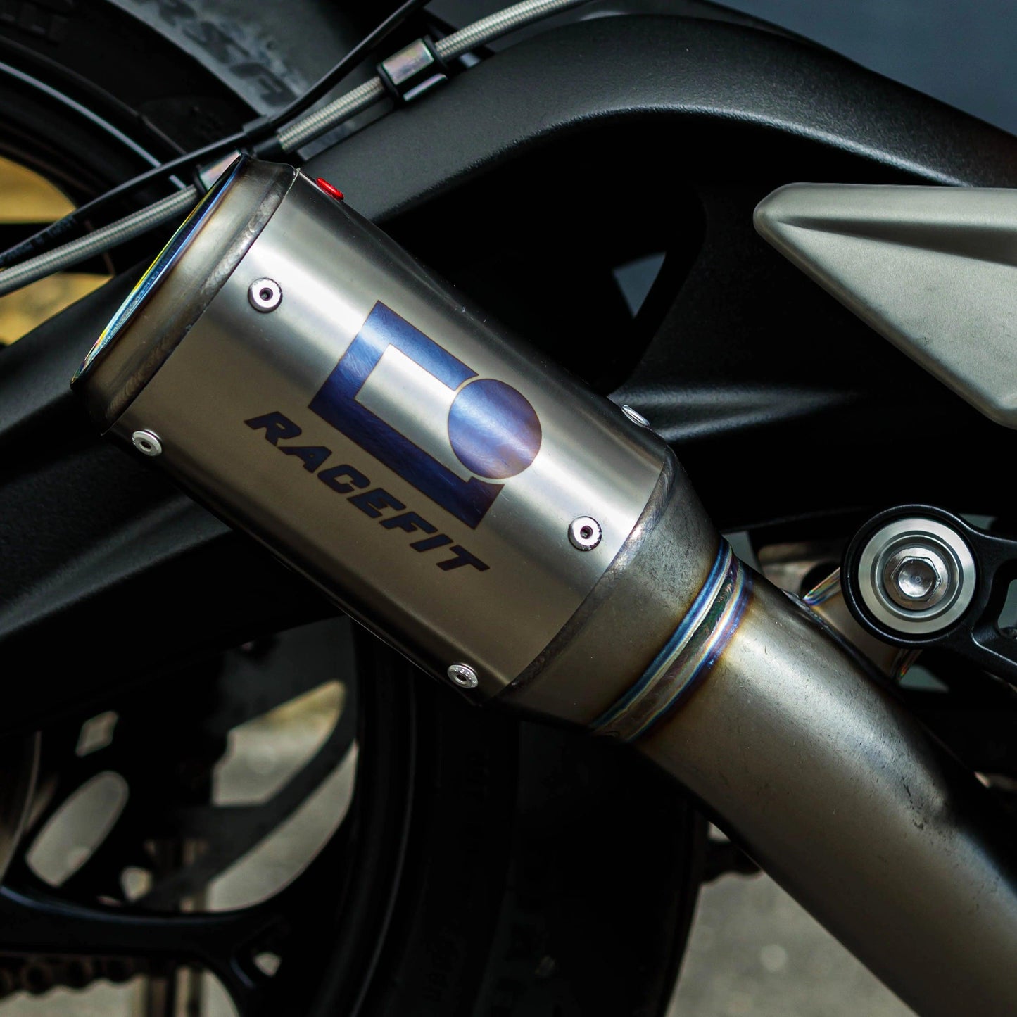 Dieser Auspuff besteht aus einer RACEFIT Titanium-Halbleitung, die mit dem originalen TRIUMPH-Kollektor der STREET TRIPLE 765 2020-2022 gekoppelt ist.