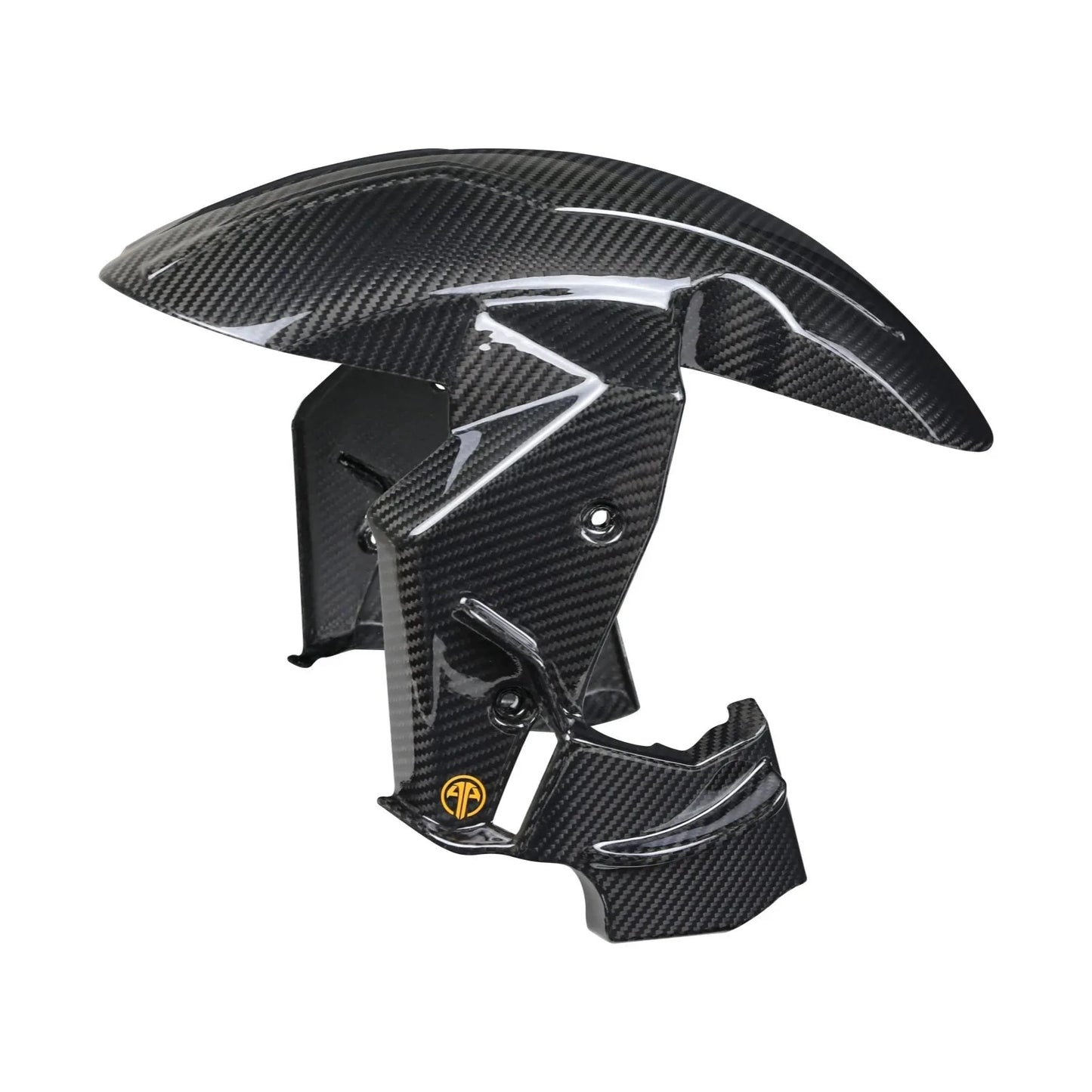 Fabriqué entièrement en fibre de carbone de haute qualité, ce garde-boue est à la fois léger et extrêmement résistants, garantissant une longévité accrue. Le design distinctif et la finition en carbone visible ajoutent une touche d'élégance et de caractère à votre moto.