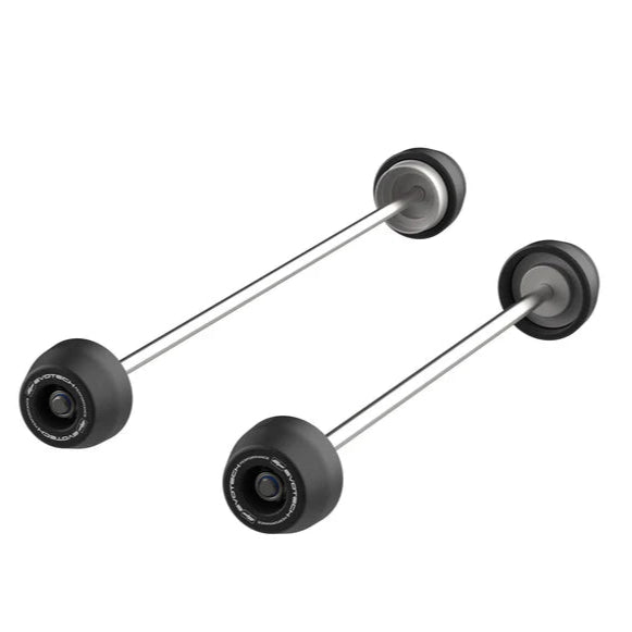 Ces protections polyvalentes offrent une excellente protection en cas de choc tout en ajoutant du style à votre moto. Elles protègent les composants avant (le pied de fourche, les freins et la jante) et arrière (le bras oscillant, les freins et la transmission) en cas d'accident ou de chute.