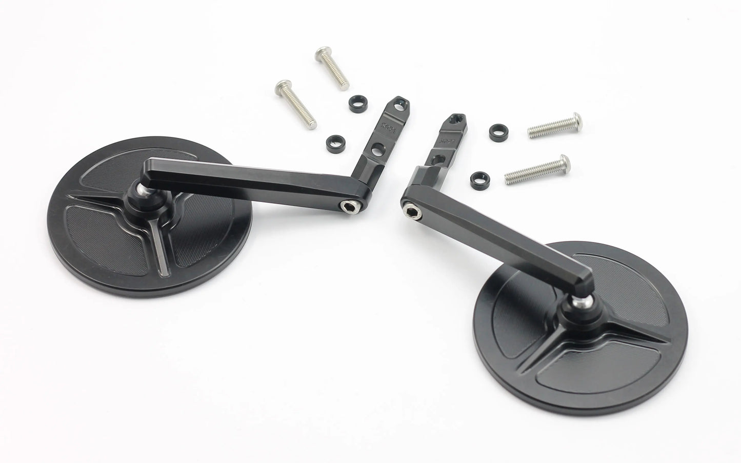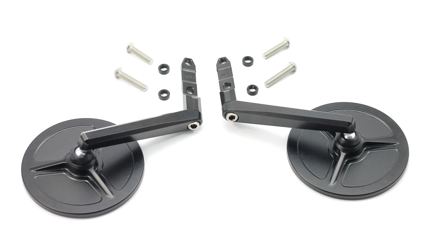 Conçus en Autriche, ces rétroviseurs sont usinés CNC dans de l’aluminium 6082 traité thermiquement, garantissant légèreté et robustesse. Leur finition anodisée noire assure une excellente résistance à l’usure et aux intempéries.