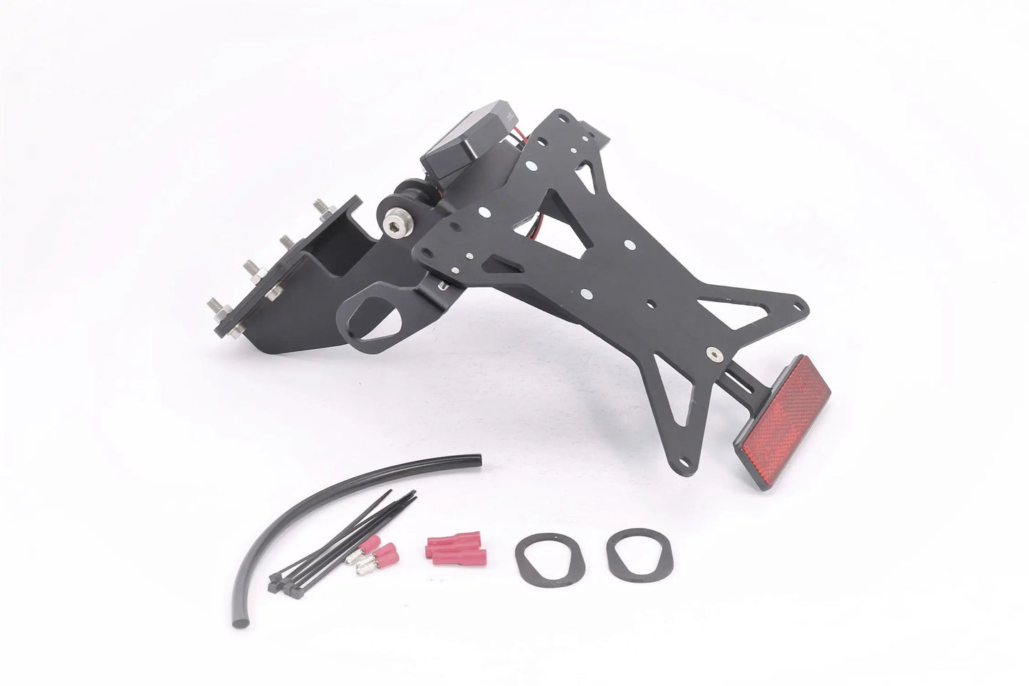 Ce support positionne parfaitement la plaque sous le feu arrière, sublimant l'arrière de votre moto.
